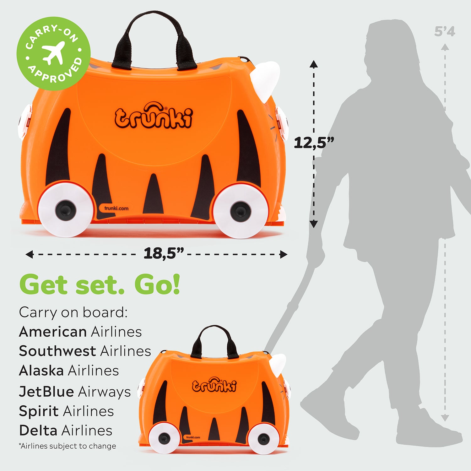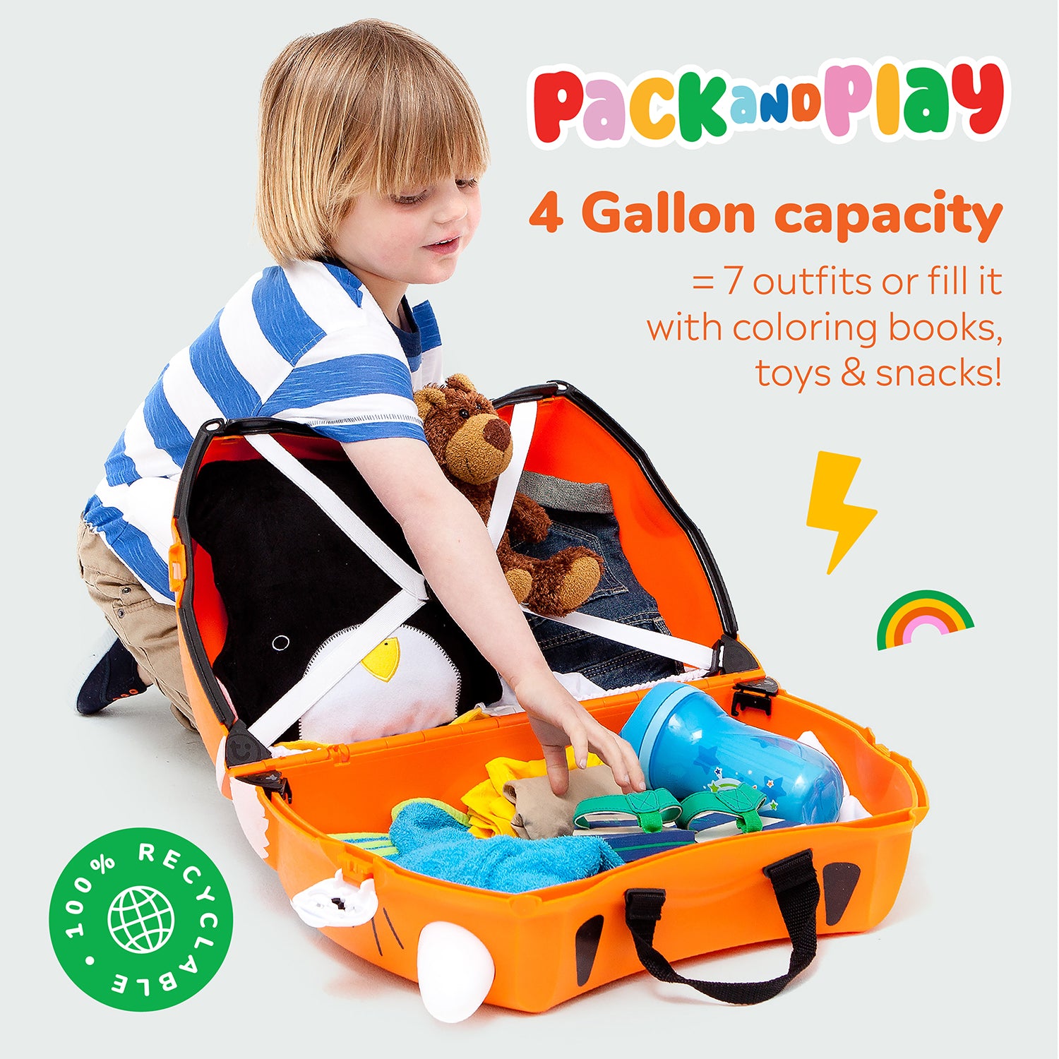 Trunki ride-on suitcases are the perfect companion for kids on the go. Originally designed to be used as hand luggage, they’re also perfect for playing at home, sleepovers, and staycations. Tipu the Tiger is made from lightweight, durable, wipe clean plastic that is built to last.